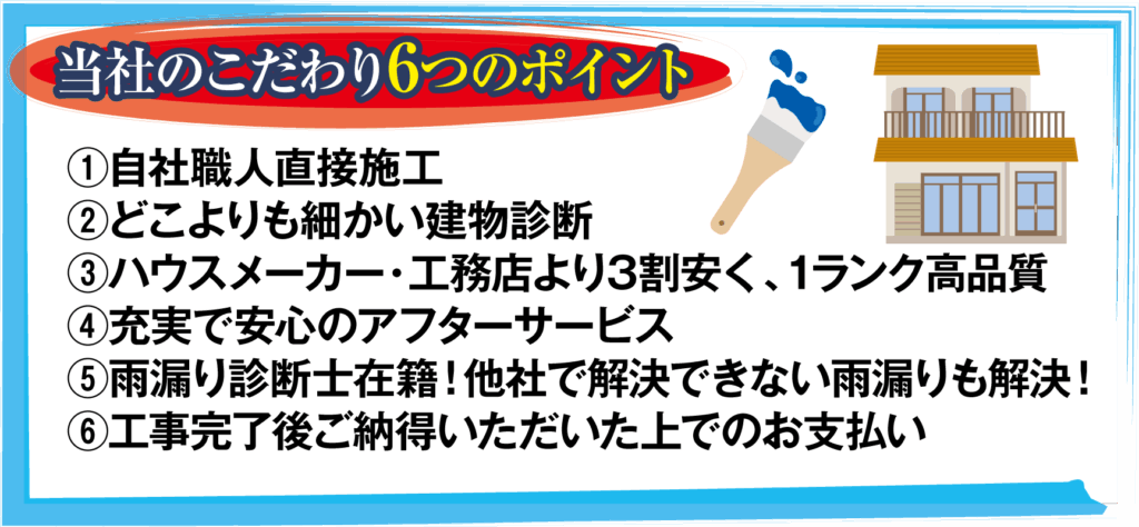 塗装工事にとって最も大切なのは雨漏りをさせない事だと考えています。